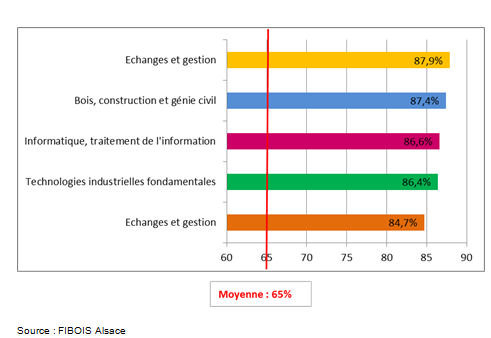 Actualité 2015 : Une étude de l'Observatoire Régional de l'Emploi et de la Formation (OREF) montre que les filières bois disposent de bons taux d'insertion.