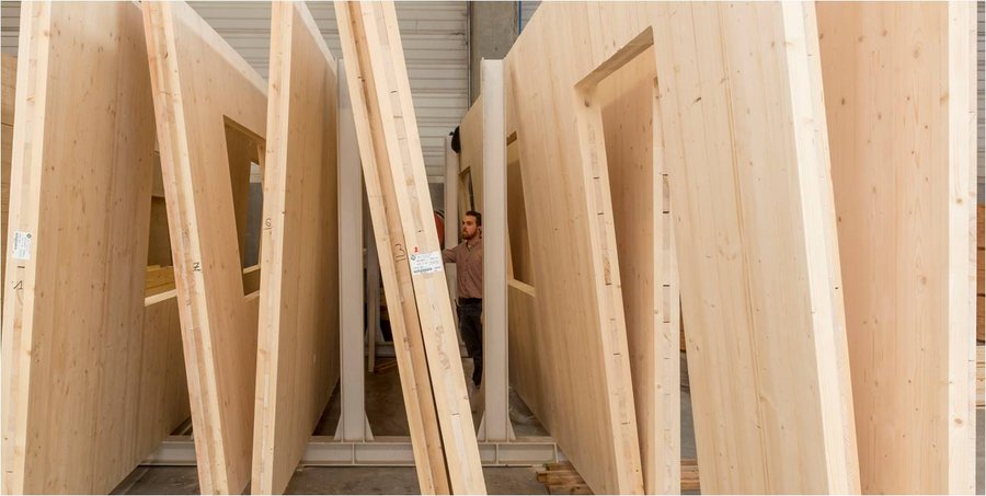 Fabricant de maisons à ossature bois, Heim Charpente pousse très loin la préfabrication des murs en atelier en intégrant la pose des fenêtres. Cette nouvelle technique présente plusieurs avantages : le montage des fenêtres en atelier évite les manutentions délicates sur chantier, en particulier pour les grandes baies vitrées très lourdes ; sur chantier, la préfabrication optimise le temps de montage afin de générer une mise hors d’eau et hors d’air plus rapide.