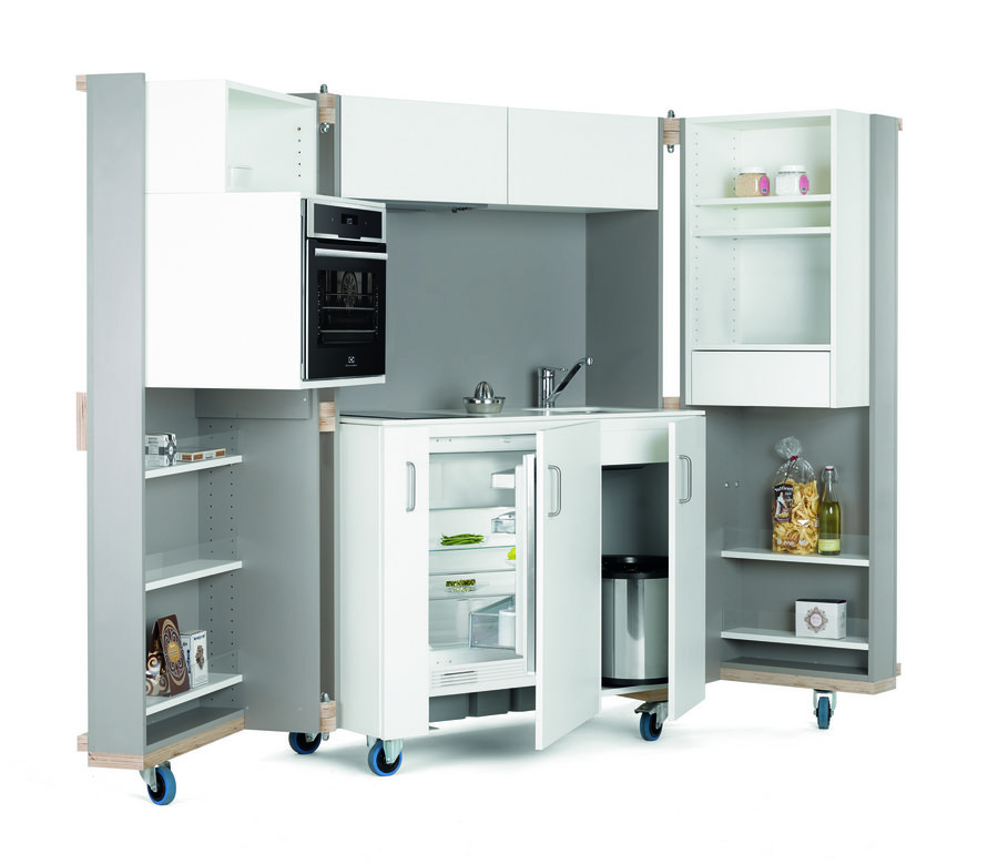 Lauréat Menuisier, agenceur et concepteur, Jean-Luc Sifferlin a inventé la plus petite cuisine au monde. Elle tient dans une armoire de 250 kg montée sur des roulettes afin de la déplacer à volonté. Occupant 1 m² au sol lorsqu’elle est fermée, « C=1m2 » offre tous les équipements indispensables lorsqu’elle est déployée : réfrigérateur, four, placards et un espace lavage. Les câbles électriques sont cachés dans les renforts en multiplis de bouleau. « C=1m2 » offre une solution provisoire pendant des travaux ; elle peut aussi équiper les espaces cuisine ou détente des entreprises.