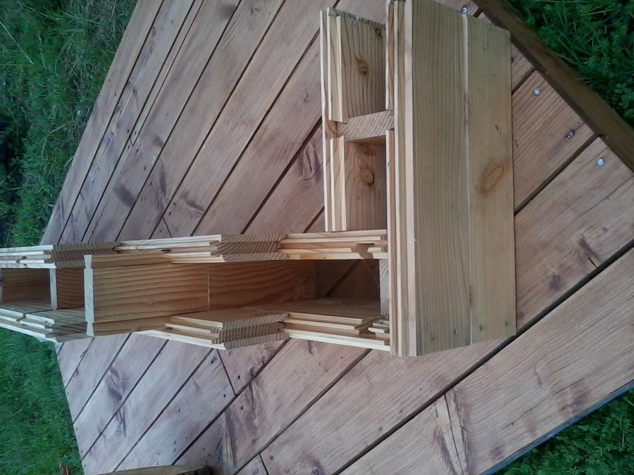 Jean-Louis Guidel a conçu un système constructif en bois massif qui ne requiert ni colle ni connecteur métallique. Les murs composés de madriers à l’intérieur et à l’extérieur sont reliés par des entretoises afin de créer des blocs creux autoporteurs. Ces cavités accueillent les matériaux isolants. Ce système de briques en bois présente donc des avantages par rapport au parpaing traditionnel : il est isolant dans la masse, se met en place avec rapidité sans engin de levage lourd ni outillage particulier.