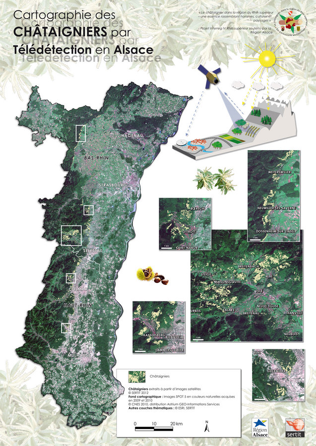 Lauréat Le laboratoire de recherche ICube a développé une méthode originale d’inventaire forestier pour actualiser les cartographies de châtaigniers en Alsace. Son service régional de traitement d’image de télédétection (SERTIT) a utilisé des relevés de terrain du CRPF, localisant des châtaigniers, et il a confronté ces informations à des images satellites acquises à différentes saisons. Cette mise en parallèle a permis de différencier le châtaignier des autres essences forestières.