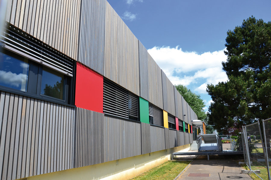 Cette scierie vosgienne répond de manière originale aux projets de bardage de grande ampleur en misant sur son expertise du matériau et de sa mise en œuvre. Le choix de bardage réalisé en amont avec l’architecte et la maîtrise d’œuvre donne lieu à la réalisation d’échantillons. Les solutions de préservation et les finitions sont appliquées en usine. Le bardage est ensuite livré coupé à longueur et éventuellement préparé avec des découpes en sifflet, des perçages, des repères destinés à aider les poseurs.